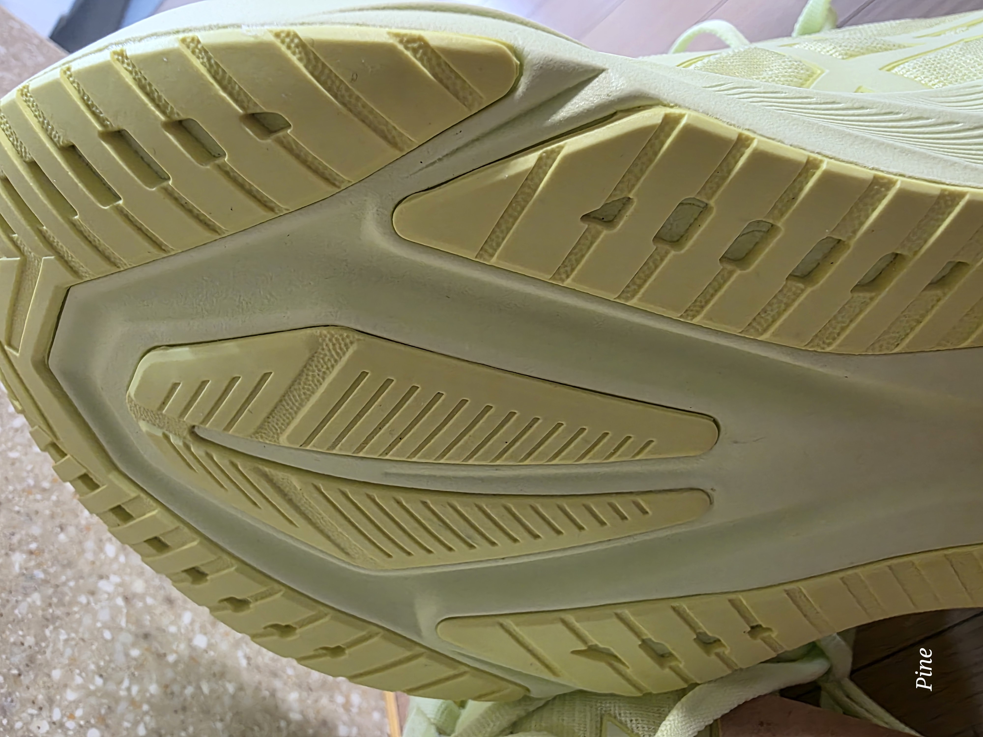 뛰어난 반발력과 충격 흡수력을 자랑하는 아식스의 신소재 폼으로, 장거리 러닝에도 발에 부담이 적습니다. - 트램펄린 구조 아웃솔